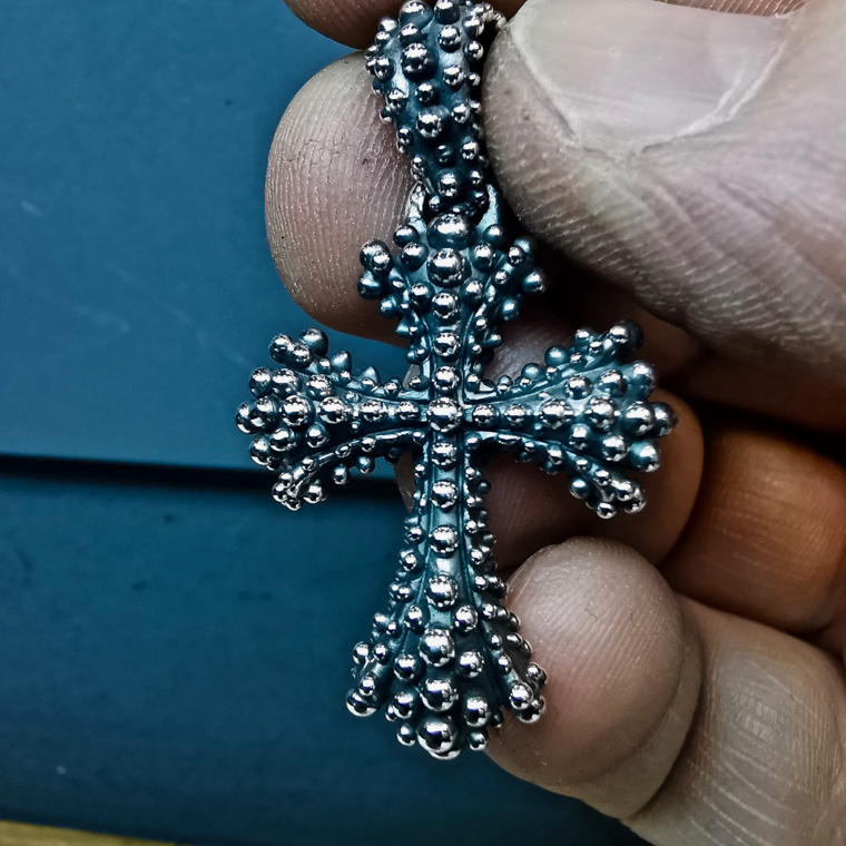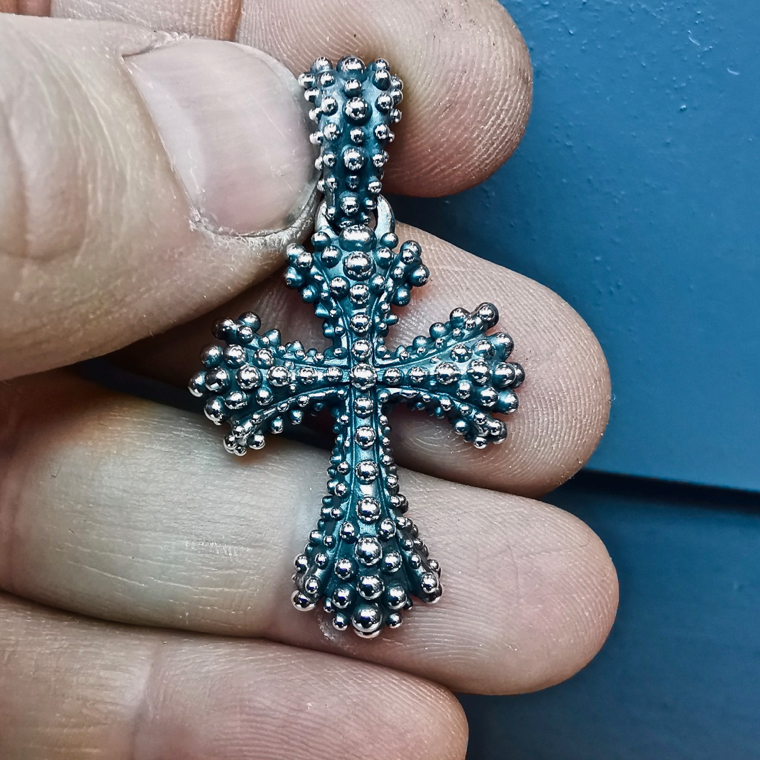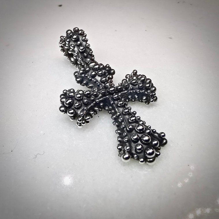 Templar Cross Bubbled – pendente in Argento 925 personalizzato con una texture Bolle. Il pendente è eseguito interamente a mano con lavorazione artigianale